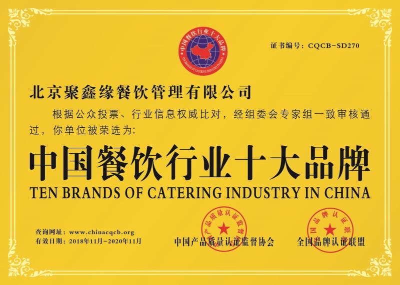 北京聚鑫緣餐飲管理有限公司是由目前餐飲界領軍人物,全國飯店業高級評委、國家級技能競賽裁判員、高級營養配餐師、2005年第三屆國際食神爭霸賽個人金獎、銀獎得主、中國烹飪大師,張寶田先生創辦,注冊資金:3888萬元,北京市政府采購定點服務單位,公司成立以來相關業務已覆蓋全國部分城市。本公司是國家有關部委批準建立的以管理與經營各企事業、大中專院校餐廳、機關、食堂承包托管、酒店酒樓人才勞務輸出、前期策劃籌建、餐飲管理咨詢、廚房設備規(guī)劃安裝、糧油及原材料配送等綜合性后勤服務機構。